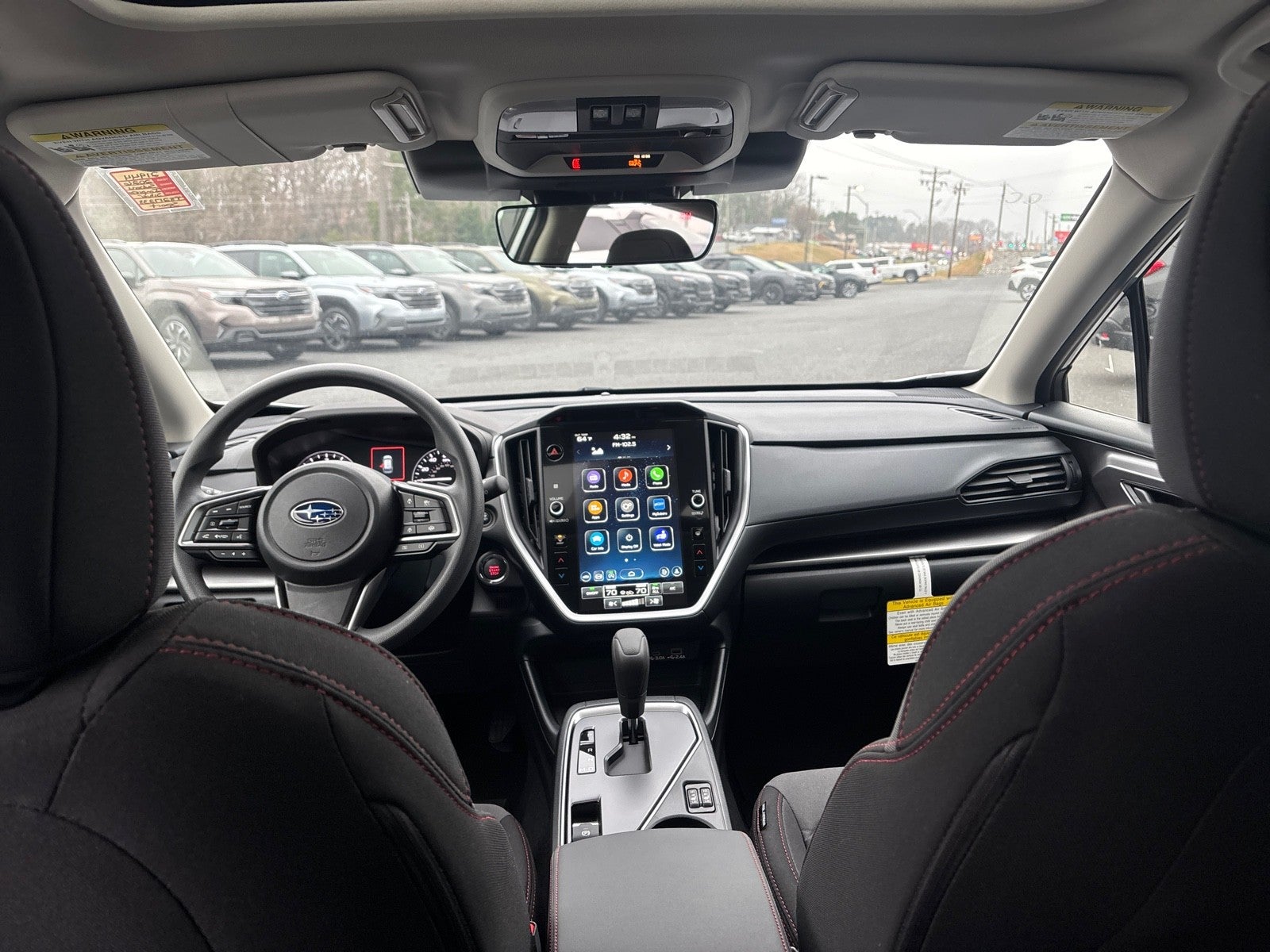 - Radio: Subaru 11.6" Multimedia Plus System -inc: valet mode, AM/FM stereo, HD Radio, multi-touch gesture high resolution display screen, voice activated controls, Bluetooth® audio streaming and hands-free phone connectivity, Bluetooth® hands-free SMS text messaging connectivity, iPod control capability, smartphone integration: wired and wireless Android Auto w/full screen view, wireless Apple CarPlay w/full screen view and wireless connection, USB and Over The Air (OTA) audio system update, audio system and Bluetooth® steering wheel control switches, 6 speakers (2 dash panel tweeter, 2 front door, 2 rear door), illuminated 3.5mm auxiliary input jack, illuminated USB A and C input charge ports, roof mounted satellite and connected services, roof mounted black antenna, connected services operation indicator, SOS emergency assistance (red button) and ehanced roadside assistance (blue i-button)