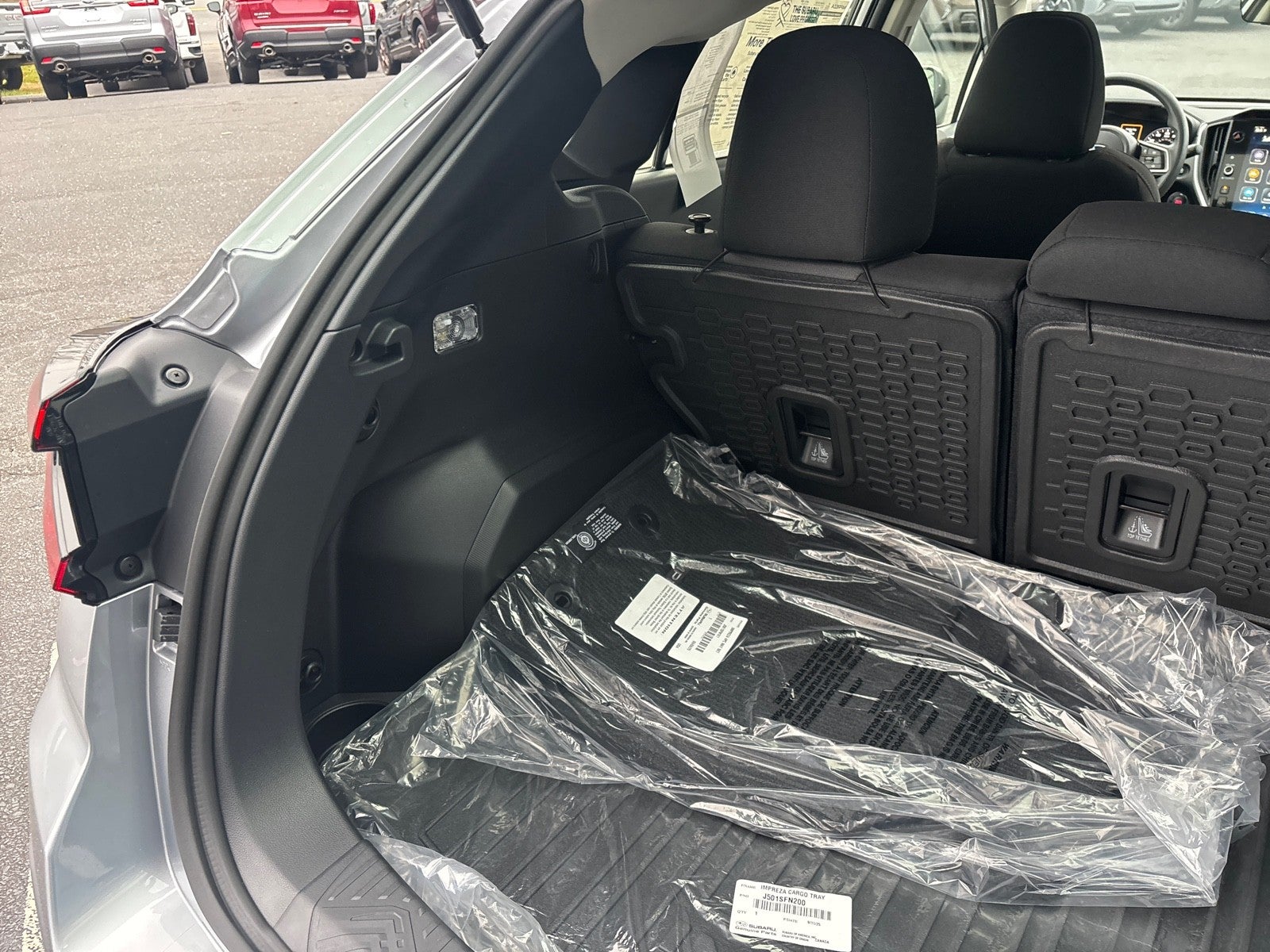 - Wheels: 18" x 7.5" J Dark Gray Aluminum-Alloy -inc: Machine finish, black aluminum-alloy wheel center cap w/Subaru 6-star logo