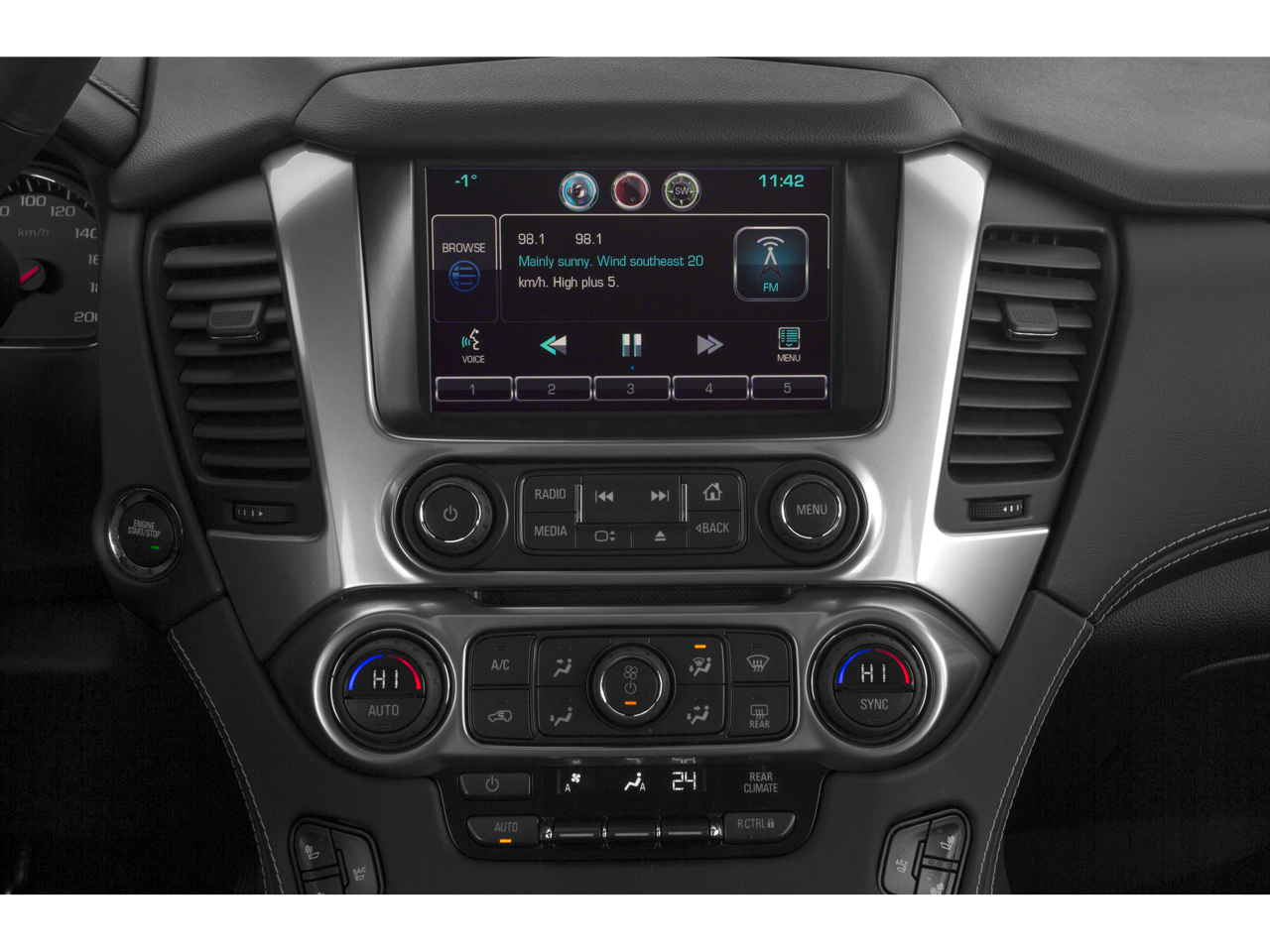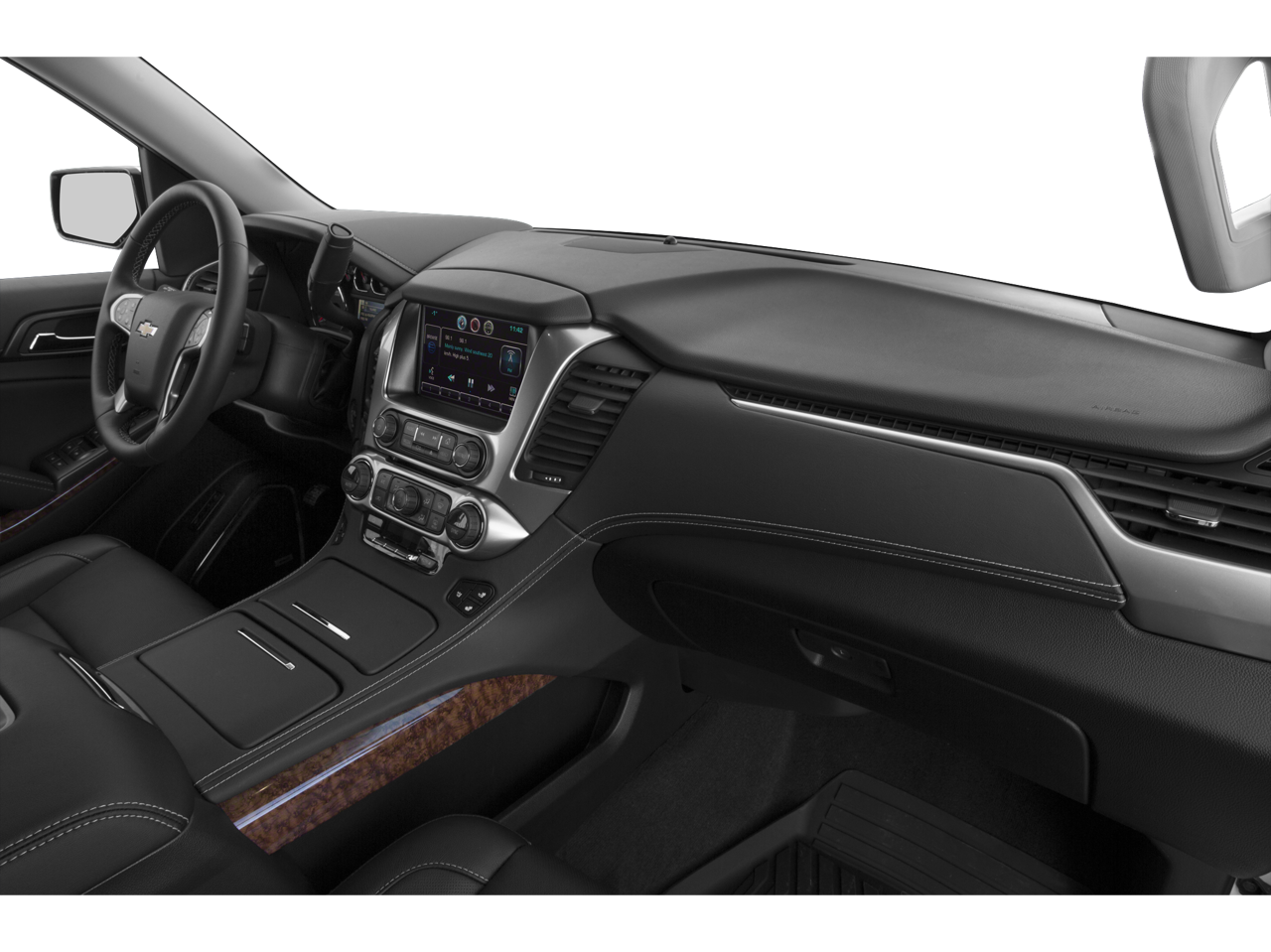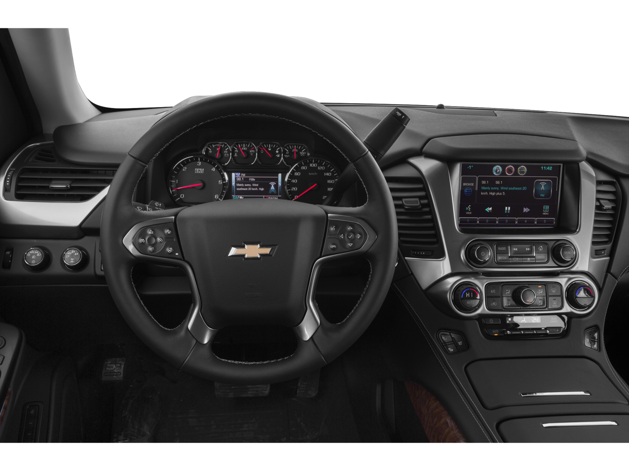 Audio system feature, single-slot cd/mp3 player (replaced by (u42) rear seat entertainment system when (u42) is ordered.)|wireless charging (only on vehicles built after 10/5/14. not compatible with all phones. compliant batteries include qi and pma technologies. reference mobile devices manual to confirm what type of battery it uses.)|audio system feature, bose centerpoint surround sound premium 10-speaker system|audio system, chevrolet mylink radio with navigation, am/fm stereo and cd player 5 usb ports, 1 sd card reader and an auxiliary jack (only standard on ltz models built after 10/5/14.)|fog lamps|wipers, front intermittent, rainsense|liftgate, hands free, power (only on vehicles built after 10/5/14.)|mirrors, outside heated power-adjustable, power-folding and driver-side auto-dimming with integrated turn signal indicators and ground illumination|headlamps, high intensity discharge|tire carrier, lockable outside spare, winch-type mounted under frame at rear|wheels, 20 x 9 (50.8 cm x 22.9 cm) polished-aluminum|daytime running lamps, with automatic exterior lamp control|wiper, rear intermittent with washer|tires, p275/55r20 all-season, blackwall|wheel, full-size spare, 17 (43.2 cm) steel|fascia, rear color-keyed ((pck) luxury package includes chrome accent strip and trailer hitch close out.)|assist steps, black (ltz includes chrome accent strip)|luggage rack side rails, roof-mounted (includes bright accent.)|fascia, front body-color|moldings, body-color bodyside|tire, spare p265/70r17 all-season, blackwall|memory settings recalls presets for driver power seat adjuster and pedals (also includes memory presets for outside rearview mirrors and power steering column.)|seats, third row 60/40 split-bench, power fold|cargo net|onstar with 4g lte provides a built-in wi-fi hotspot to connect to the internet at 4g lte speeds (only on vehicles built after 10/5/14. visit www.onstar.com for vehicle availability, details and system limitations. services and connectivity may vary by model and conditions. 4g lte service available in select markets. 4g lte performance based on industry averages and vehicle systems design. some services require data plan.)|display, driver instrument information enhanced, multi-color|steering wheel, leather-wrapped|power outlets, 5 auxiliary, 12-volt includes outlets in the instrument panel, console, back of console, 1 in 3rd row and 1 in cargo area (when bench seat is ordered, the outlet on the back of the console is lost)|seat adjuster, front passenger 6-way power|floor covering, color-keyed carpeting|pedals, power-adjustable for accelerator and brake|steering wheel controls, mounted audio and cruise controls includes driver information center controls|passive entry system includes (aqq) remote keyless entry|seats, heated second row|steering column, power tilt and telescopic|steering wheel, heated, leather-wrapped and color-keyed with theft-deterrent locking feature|climate control, tri-zone automatic with individual climate settings for driver, right-front passenger and rear passengers|remote vehicle start|universal home remote includes garage door opener, programmable|cargo management system|door locks, power programmable with lockout protection|floor mats, color-keyed carpeted first and second row, removable|seating, front bucket with perforated leather-appointed heated and cooled seat cushions 12-way power driver and passenger seat includes 6-way power cushions, driver seat 2-position memory, 4-way power lumbar control and power recline|seats, heated and cooled driver and front passenger|power outlet, 110-volt|assist handles, all seats|lighting, interior with dome light, driver- and passenger-side door switch with delayed entry feature, cargo lights, door handle or remote keyless entry-activated illuminated entry and map lights in front and second seat positions.|mirror, inside rearview auto-dimming|windows, power, all express down, front express up|conversation mirror (deleted when (utt) theft protection package is ordered.)|console, floor with storage area, cup holders, sd card slot and auxiliary jack|cruise control, electronic with set and resume speed (not included when (y66) adaptive cruise control is ordered.)|seat trim, perforated leather-appointed|seats, second row bucket, power release|defogger, rear-window electric|transfer case, active, single-speed, electronic autotrac with rotary controls, does not include neutral. cannot be dinghy towed (requires 4wd model. not available with (nht) max trailering package.)|rear axle, 3.08 ratio (not available with (nht) max trailering package.)|cooling, external engine oil cooler, heavy-duty air-to-oil integral to driver side of radiator|suspension, front coil-over-shock with stabilizer bar|keyless start, switch|steering, power|engine, 5.3l ecotec3 v8 with active fuel management, direct injection and variable valve timing includes aluminum block construction (355 hp [265 kw]